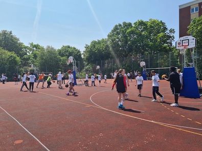 Ein Team der Ferdinand Schule nimmt an der NRW 3x3 Streetball Tour in Düsseldorf teil.