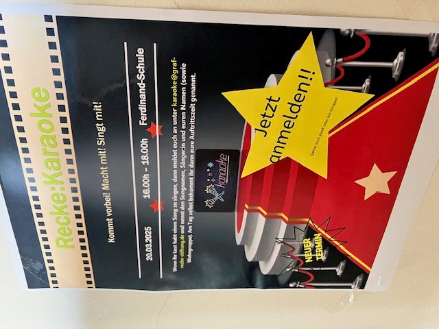 Die Karaoke-Veranstaltung in den Räumlichkeiten der Ferdinand Schule war ein voller Erfolg! Mit 15 talentierten Interpreten gab es eine vielfältige Auswahl an Songs, die die Stimmung anheizten. Die Superstimmung wurde durch die zahlreichen Besucherinnen und Besucher noch verstärkt. Eine Stunde lang wurde gemeinsam gesungen und gelacht, und es war Karaoke-Fun für jedermann. Aufgrund des positiven Feedbacks ist geplant, die Veranstaltung im Frühjahr erneut durchzuführen. Ein Abend voller Musik und Gemeinschaft, der noch lange in Erinnerung bleiben wird!